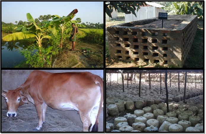 Pond based field crop + fishery + horticulture + livestock + mushroom system